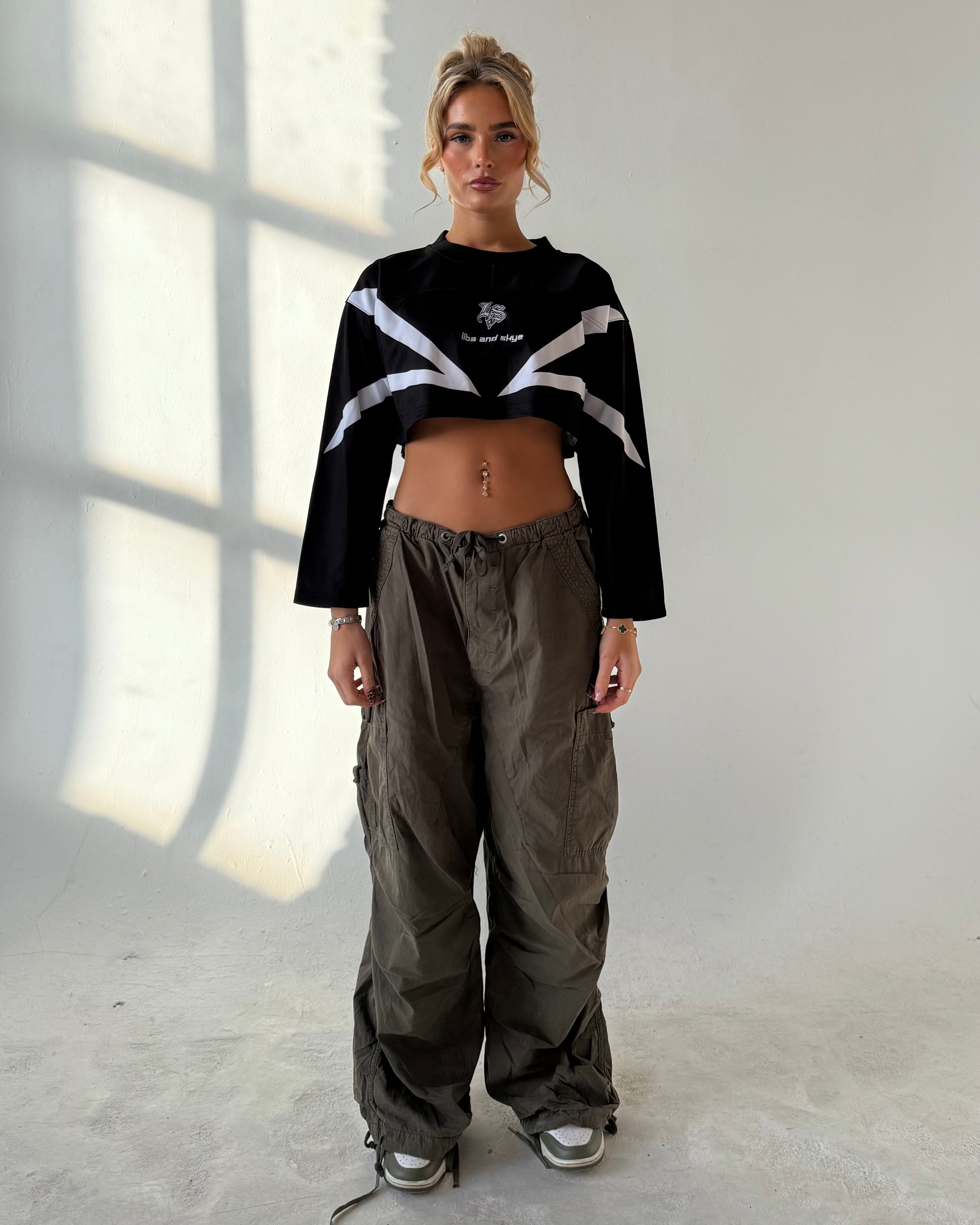 Introducing the Blackout Jersey, a high quality oversized jersey. Black Jersey Top with grey details Long-sleeved, V-neck Oversized...Regular price £59.99 GBPSale price £59.99 GBP Regular priceUnit price / per£74.99 GBP -