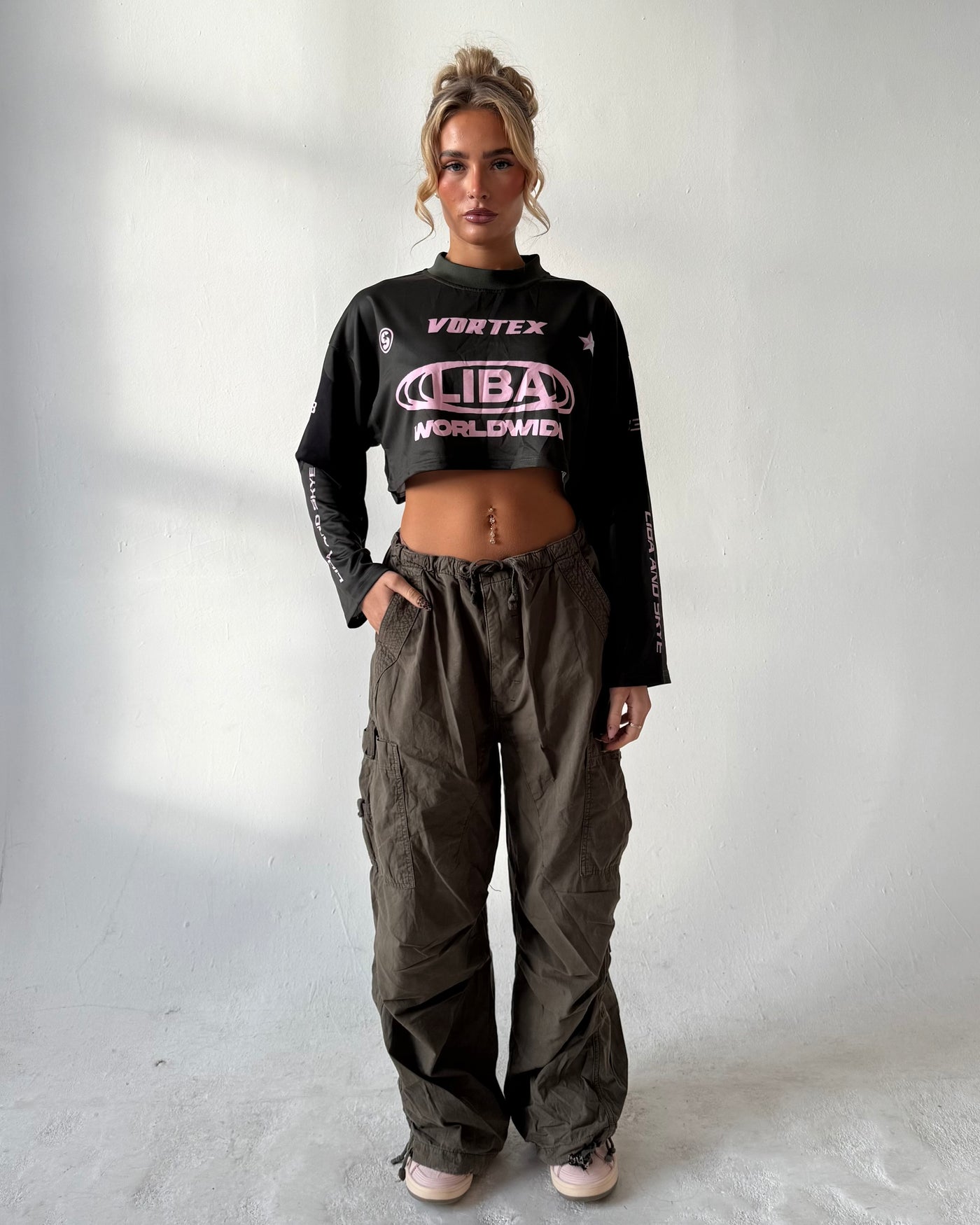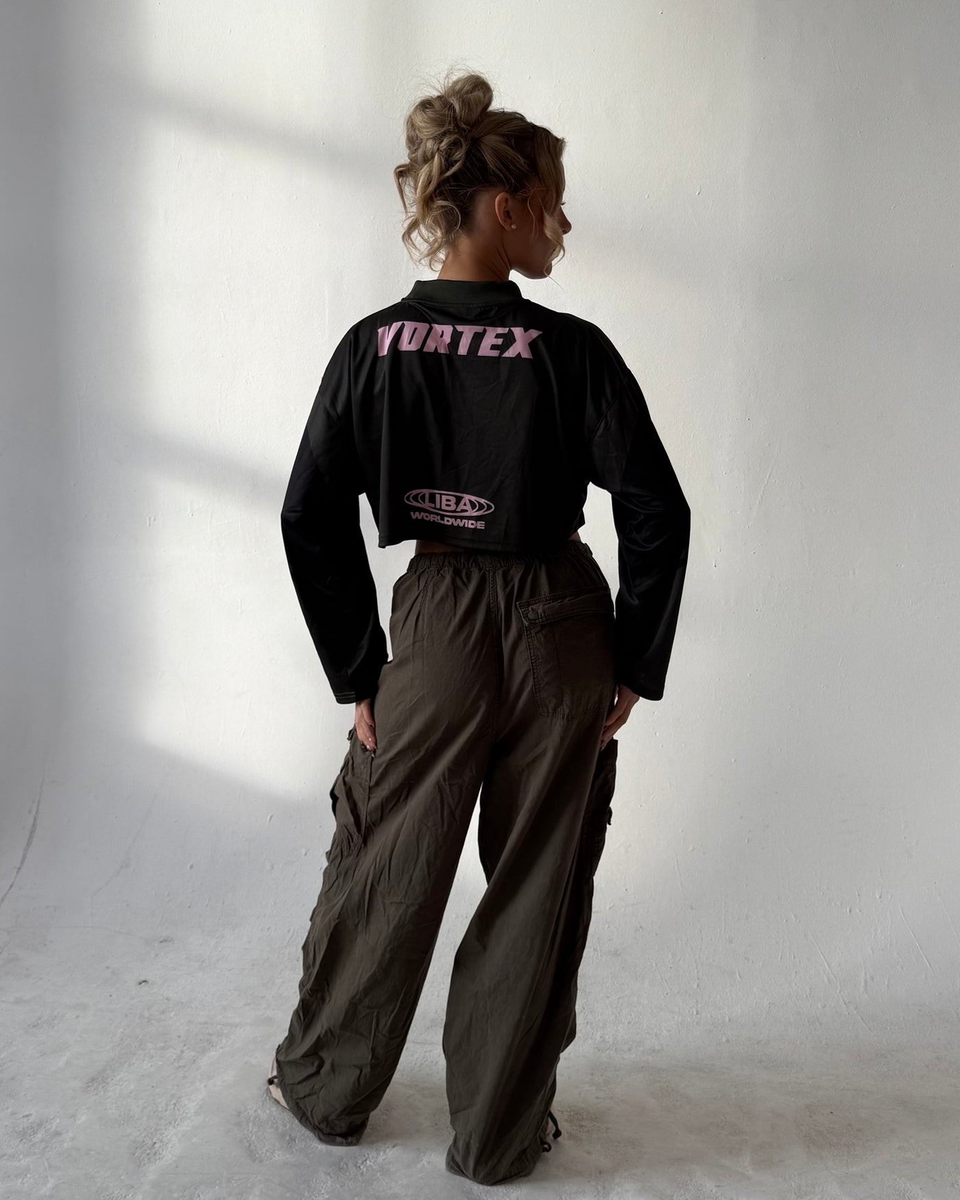 this vortex jersey is cropped with a drop shoulder and long sleeves. it’s designed for movement, comfort, and that effortless off-duty look.
