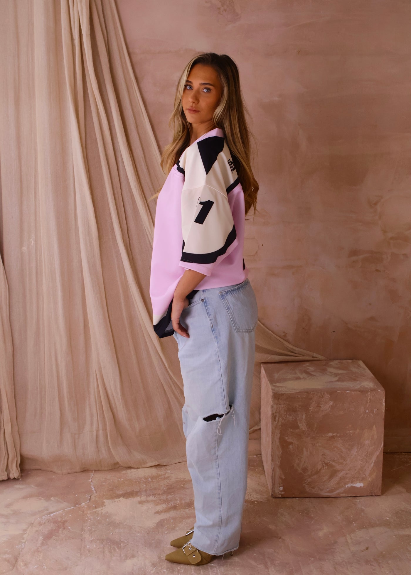 the untamed jerseys has an oversized silhouette with a drop shoulder and long sleeves. it’s designed for movement, comfort, and that effortless off-duty look.