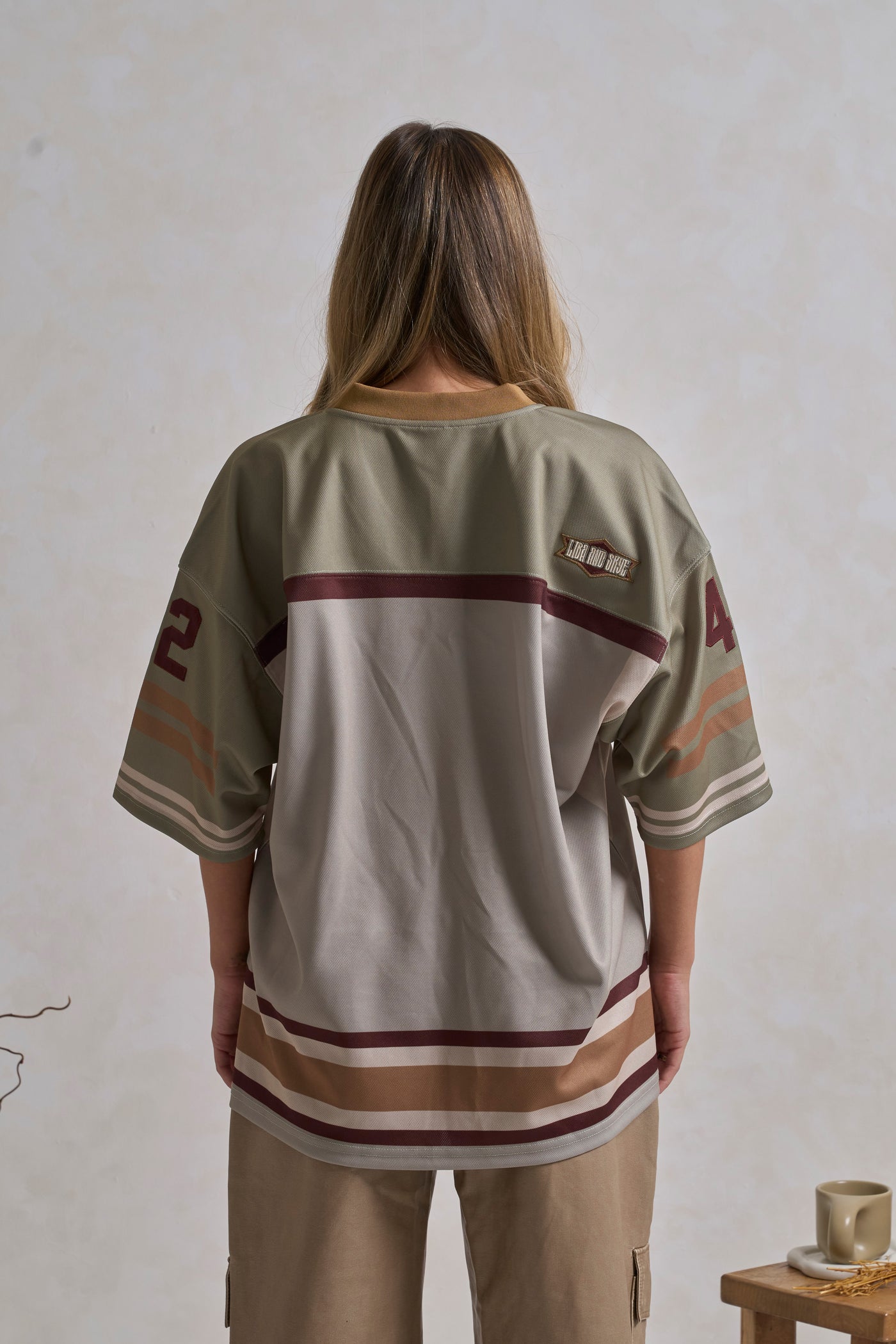 the untamed jerseys has an oversized silhouette with a drop shoulder and long sleeves. it’s designed for movement, comfort, and that effortless off-duty look.